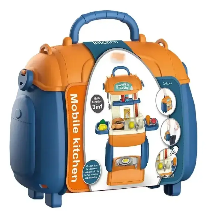 - Frutas, verduras, utensilios de cocina, pileta de lavado y una práctica valija para guardar todo.
